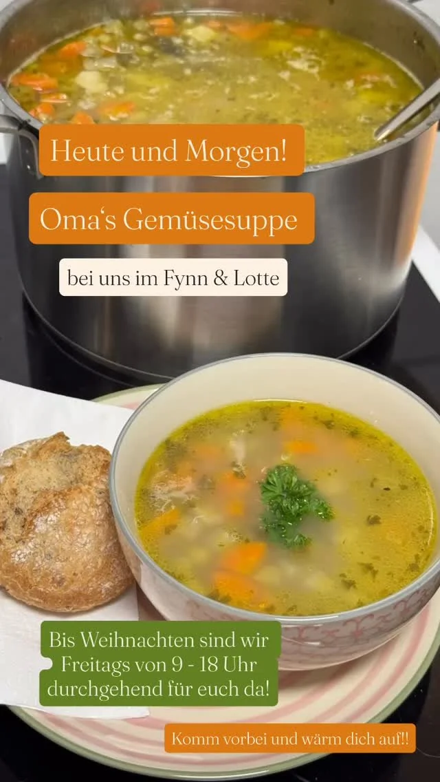 Frisch gekocht, heiss serviert und perfekt für die kalte Jahreszeit. Ab 31. Oktober bis Weihnachten gibt es immer Freitags und Samstags unsere feine Suppe.